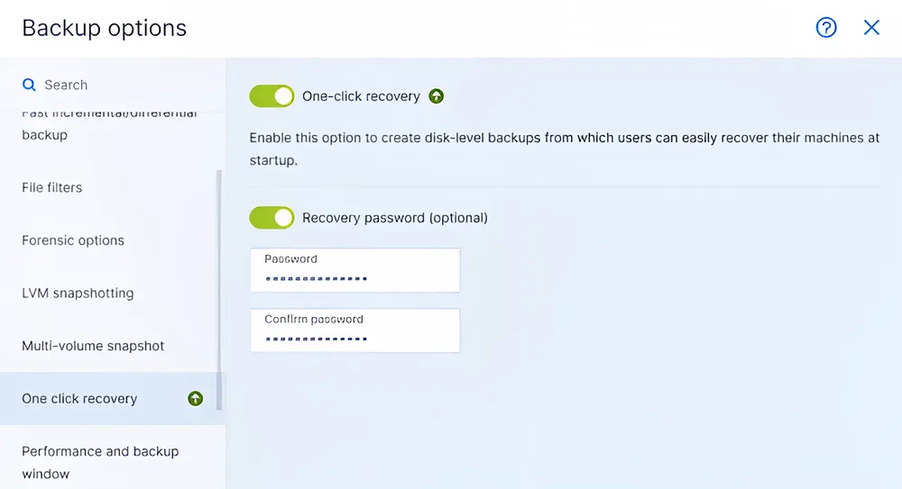 | Opciones de almacenamiento híbrido (Acronis, Azure, local) | ||