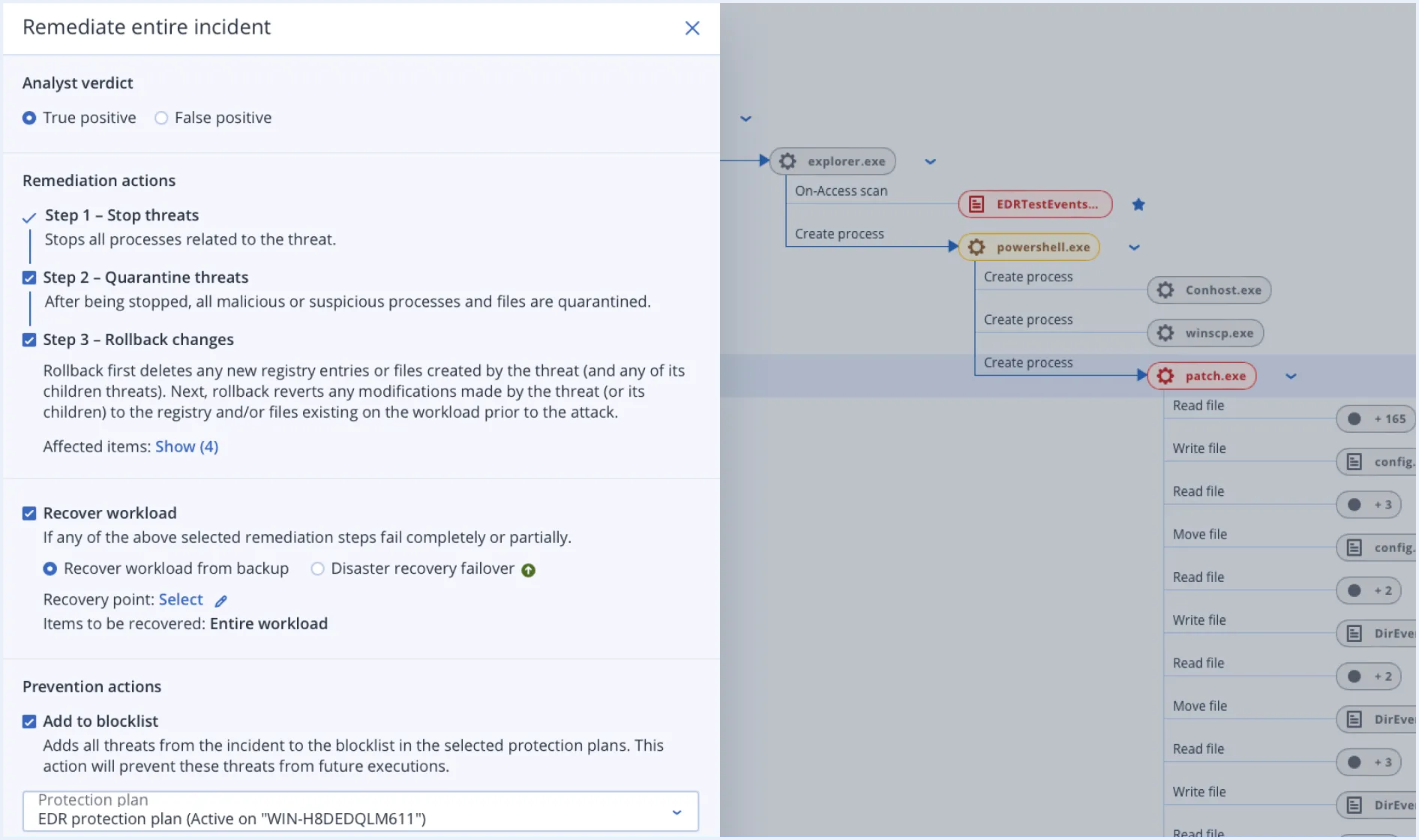 Inicie fácilmente una solución de seguridad EDR completa con recuperación rápida